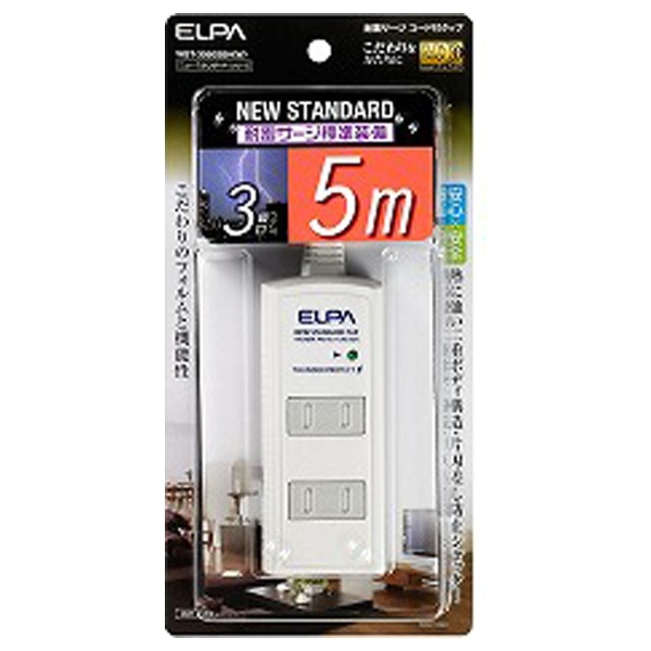 耐雷コード付タップ (2P・3個口・5.0m) WBT-3050SBN(W)