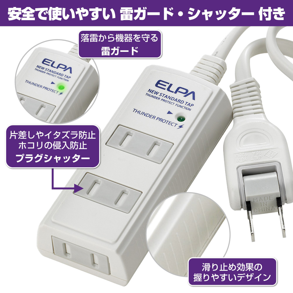 〔電源タップ:耐雷・スイングプラグ〕雷および開閉サージを低減し接続された機器を守るタップ。(2P・3個口・5.0m)