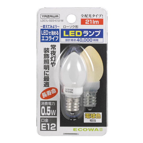 LDC1LG23E12W ローソク形LEDランプ(電球色/E12口金/ホワイト)