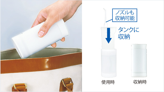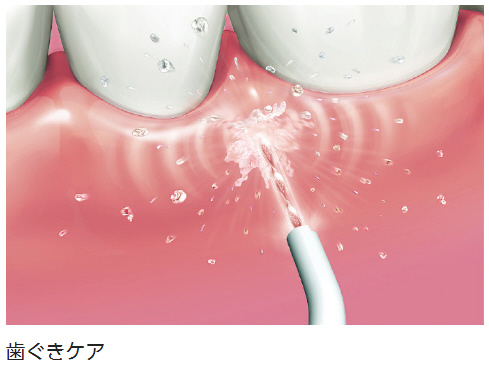 歯間から歯ぐきまで心地よくケア。充電の手間なく使える乾電池式。旅行など外出先での使用にもピッタリです。