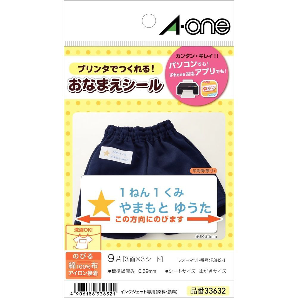 33632 布プリ(のびる/アイロン接着タイプ/はがきサイズ/ネーム用/3面) 【864】