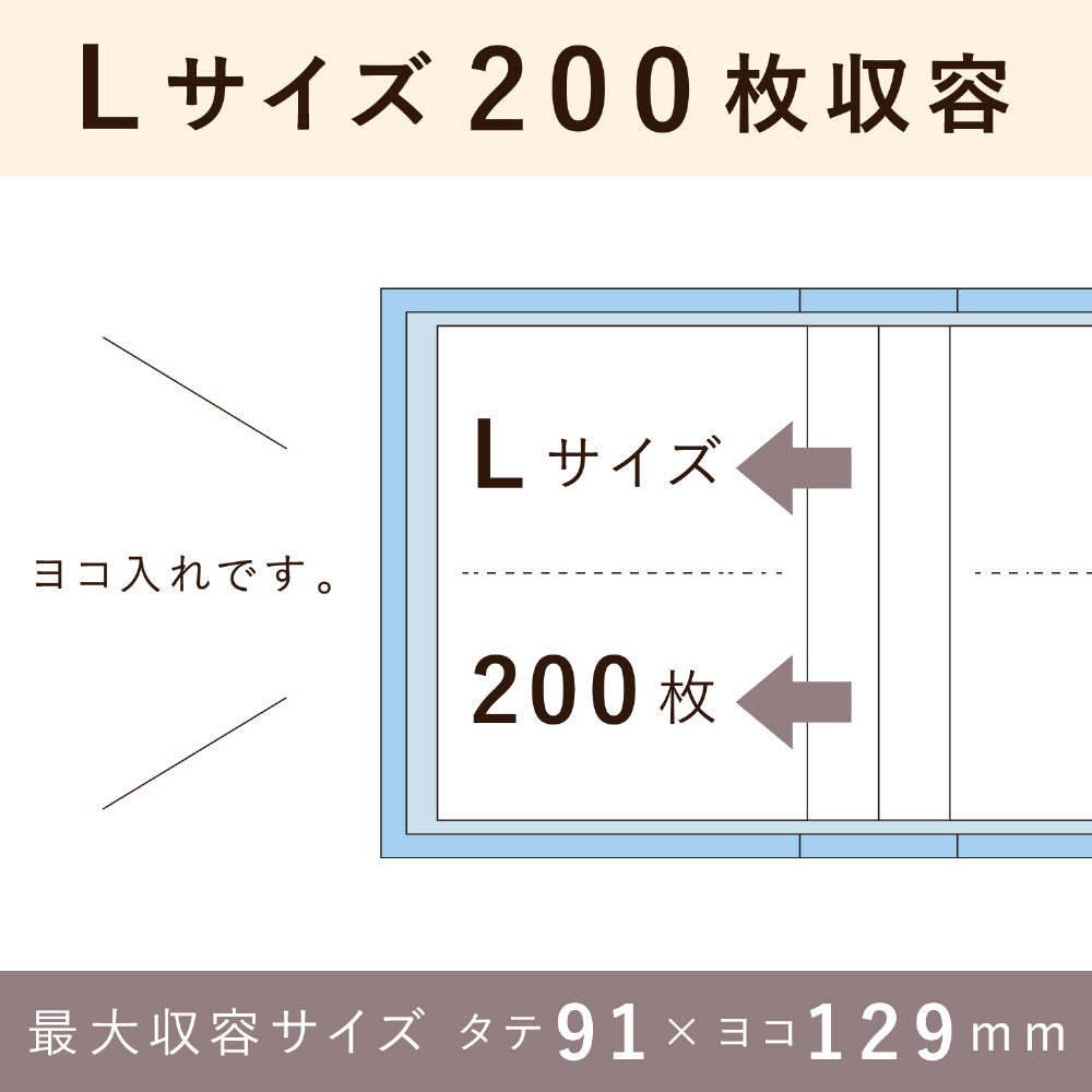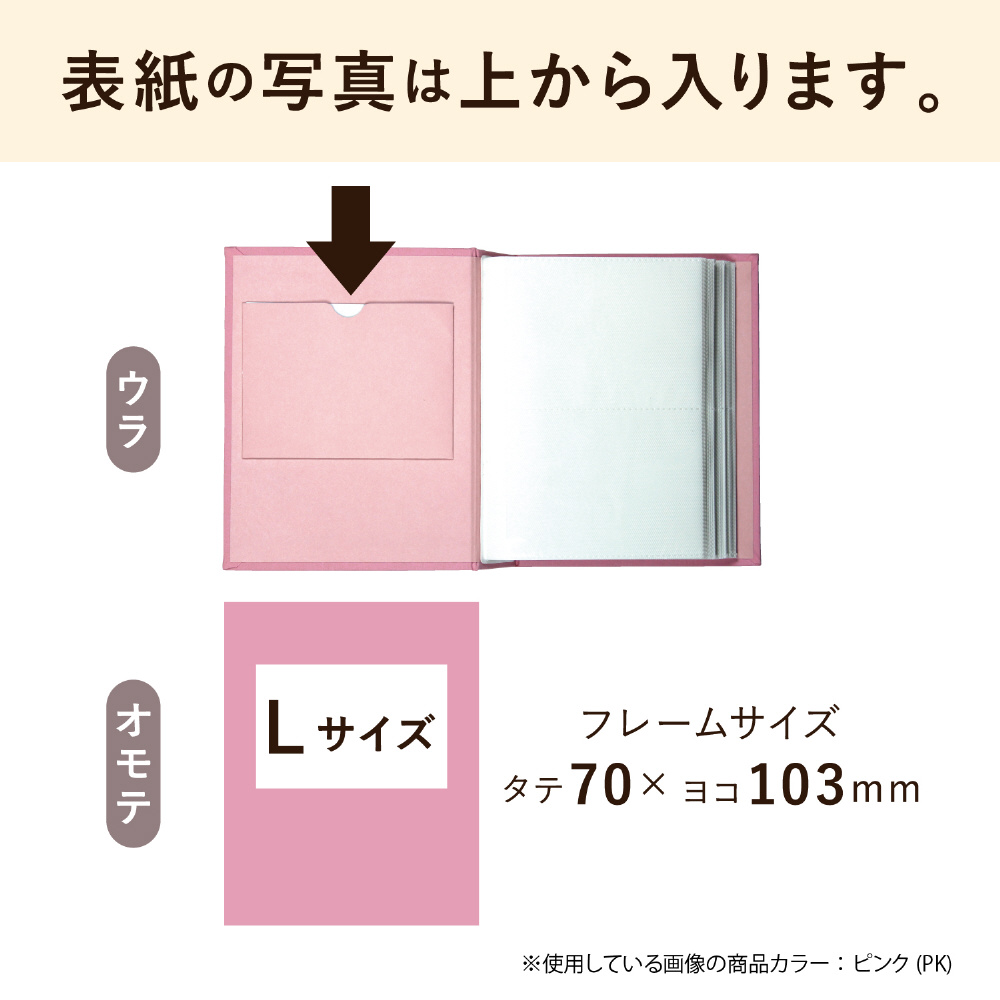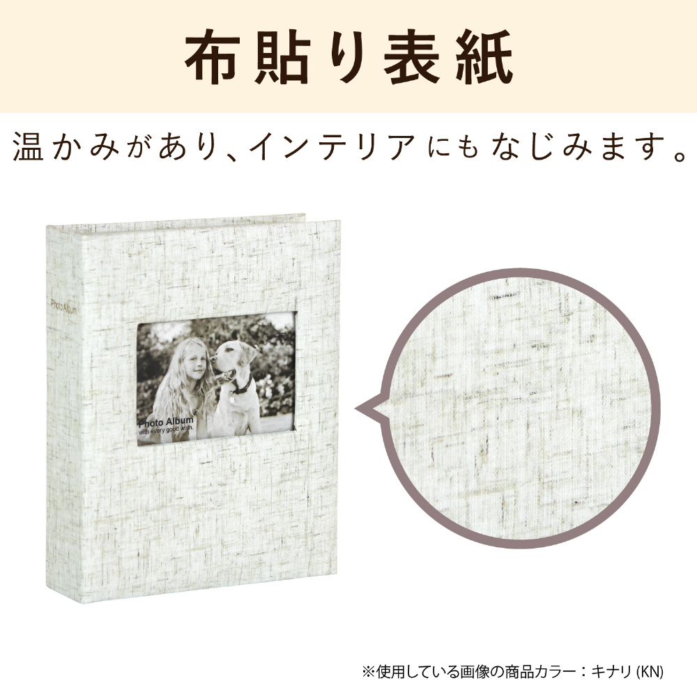 表紙がフォトフレームになったポケットアルバム。優しい色合いのカラフルな布貼り表紙が特長の200枚収容できるポケットアルバムです。