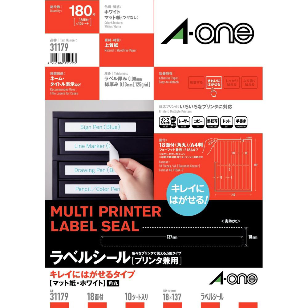 31179 ラベルシール(プリンタ兼用/キレイにはがせるタイプ/A4判/18面) 【864】