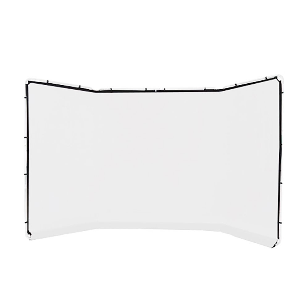 クリップで留めるだけでアルミフレームに装着できる、折り畳み式パノラマ背景のホワイトのファブリックカバーです。