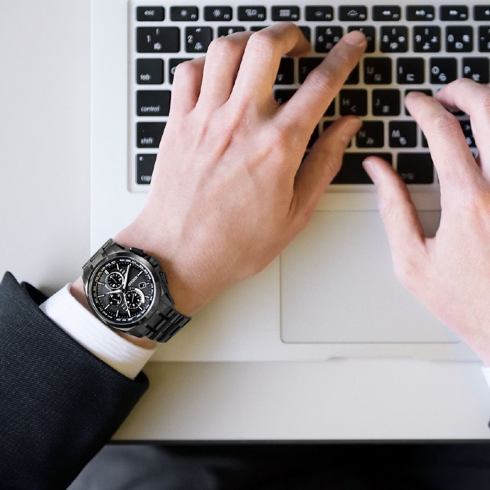 AT8044-56E [ソーラー電波時計]アテッサ 「エコ・ドライブ電波時計 ダイレクトフライト DLC仕様」