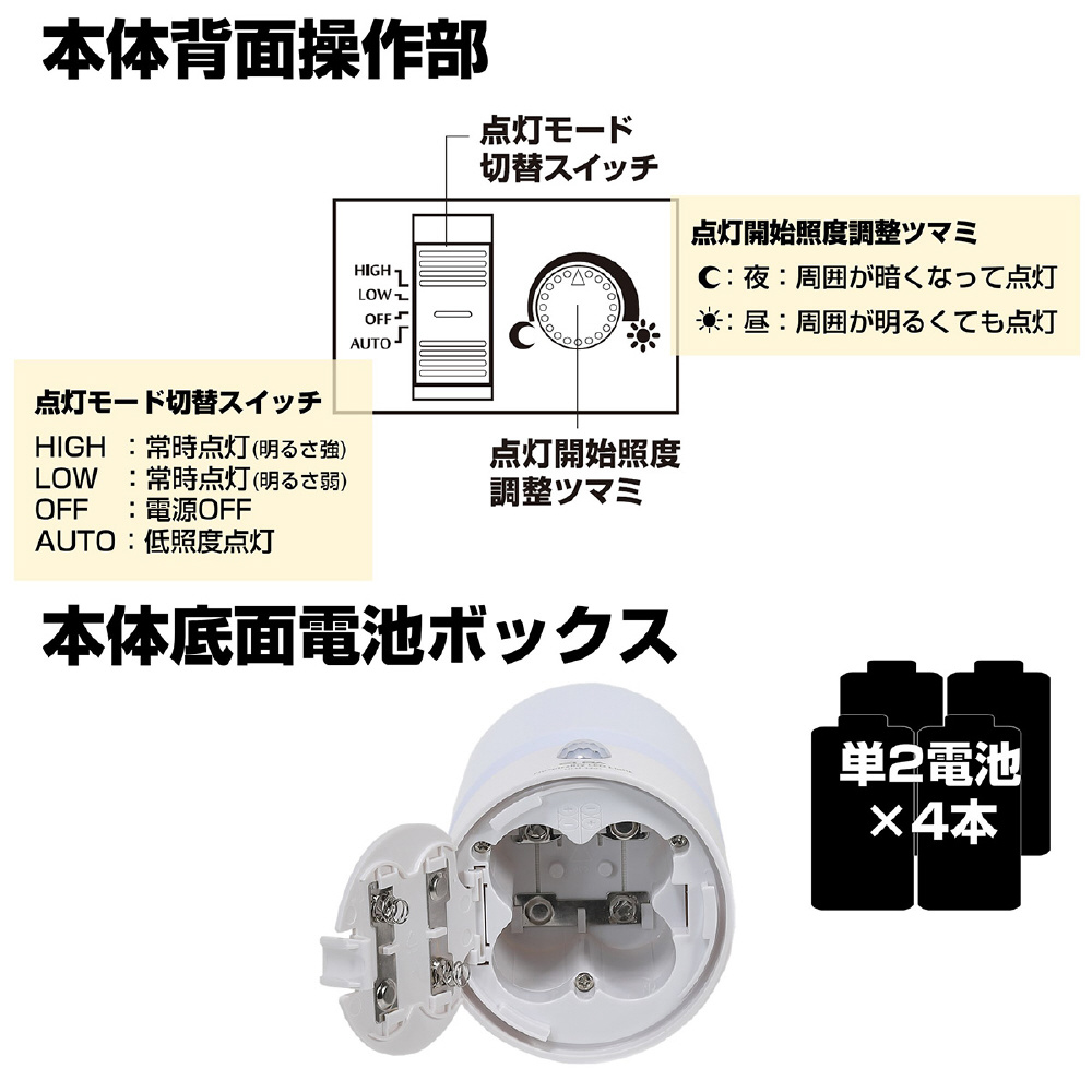 周囲の照度により点灯を調整できる明暗感度センサー調整機能付
