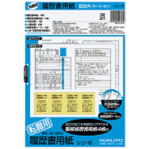 [履歴書用紙] 履歴書用紙 転職用 B5 (履歴書4枚、経歴書4枚) シン-6