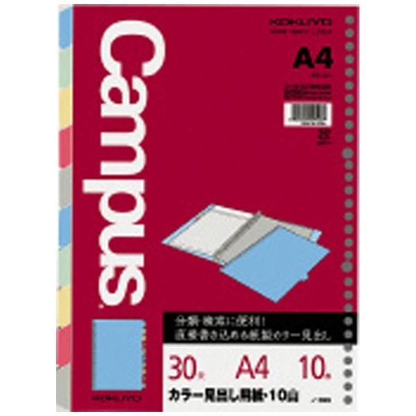 [ルーズリーフ] ルーズリーフ用カラー見出し用紙 10山 A4 30穴 丸穴 10枚 ノ-899