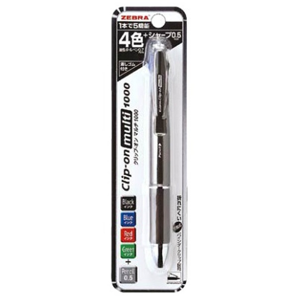 [多機能ペン] クリップ-オン マルチ1000 黒 (インキ色:黒・青・赤・緑+シャープ0.5mm) パック入 P-B4SA2-BK