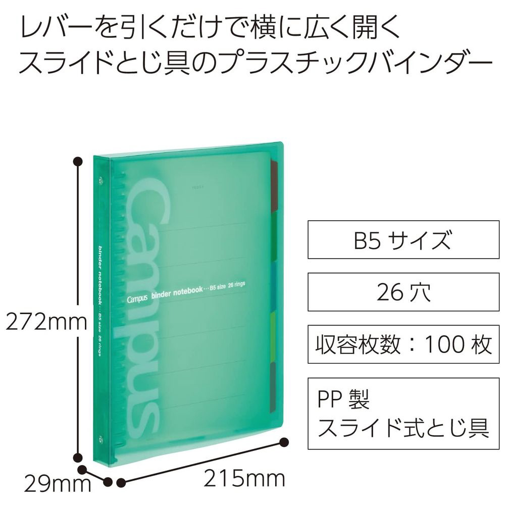 キャンパス バインダー ミドル B5縦 26穴 ル-P333NGZ 緑