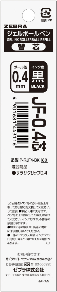 ジェルボールペン替芯 JF-0.4芯 黒 P-RJF4-BK [0.4mm /エマルジョンインク]