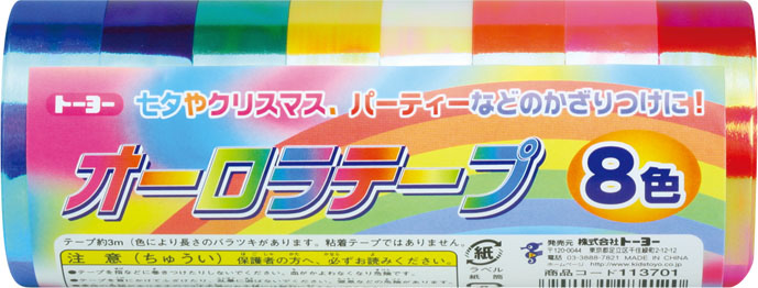オーロラ特殊紙を使ったテープです。七夕やクリスマス、パーティーの飾かざりつけにご利用いただけます。