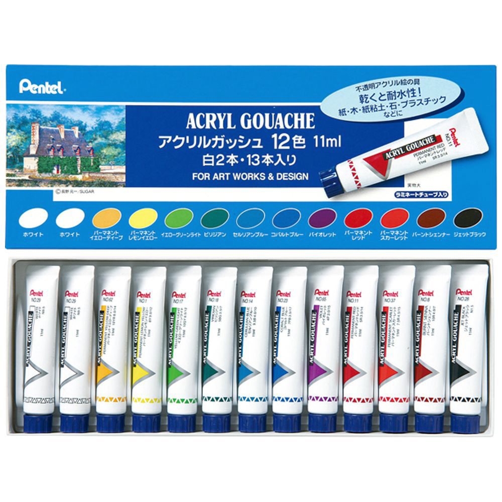 [アクリル絵具] アクリルガッシュ ラミネートチューブ 12色(13本入り・白2本) WXR-12
