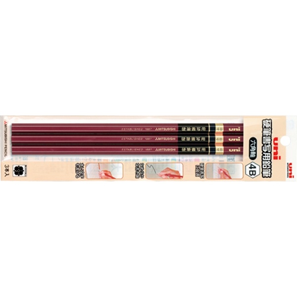 [鉛筆] 硬筆書写用鉛筆 (硬度:4B、軸型:六角形) 3本パック UKS6K3P4B