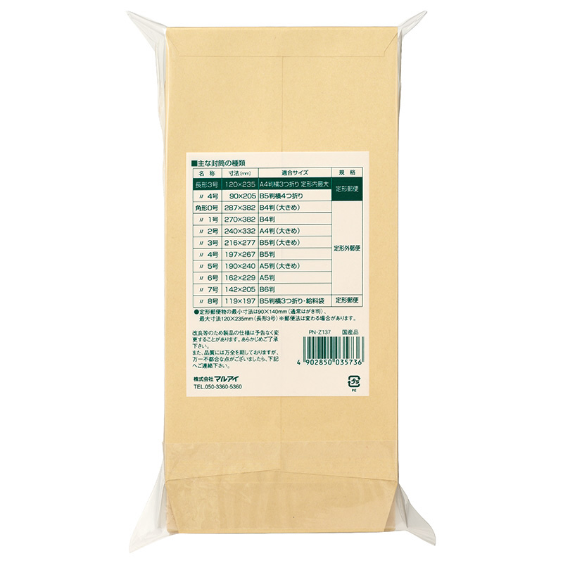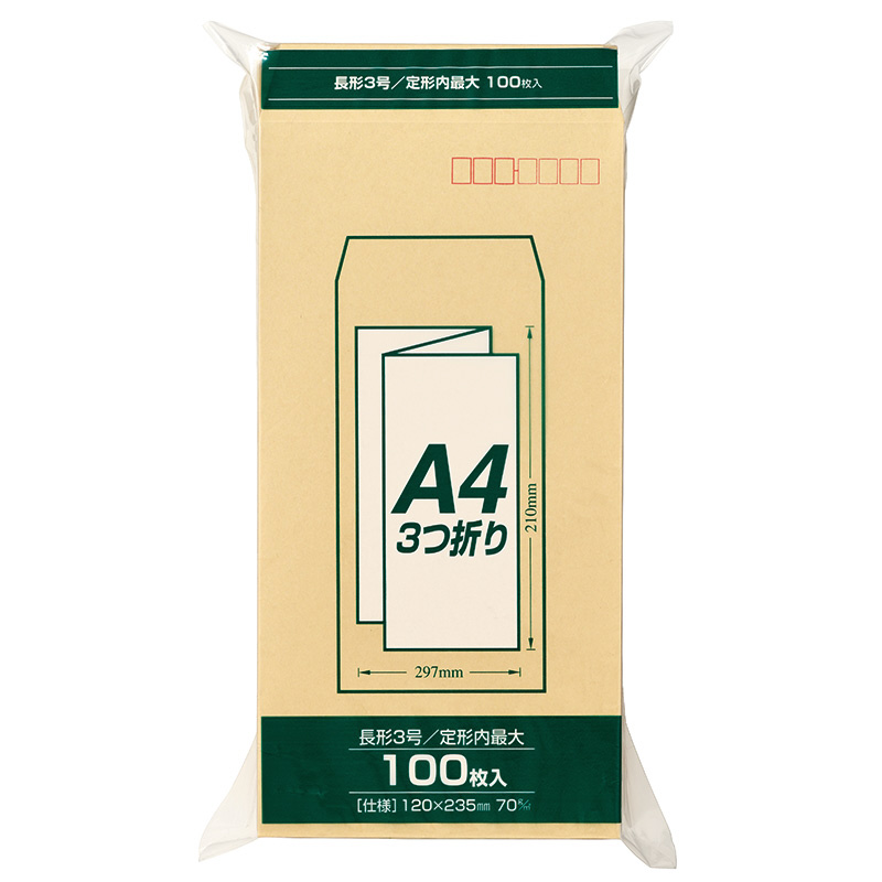 [封筒] クラフト封筒 長形3号 100枚 PN-Z137