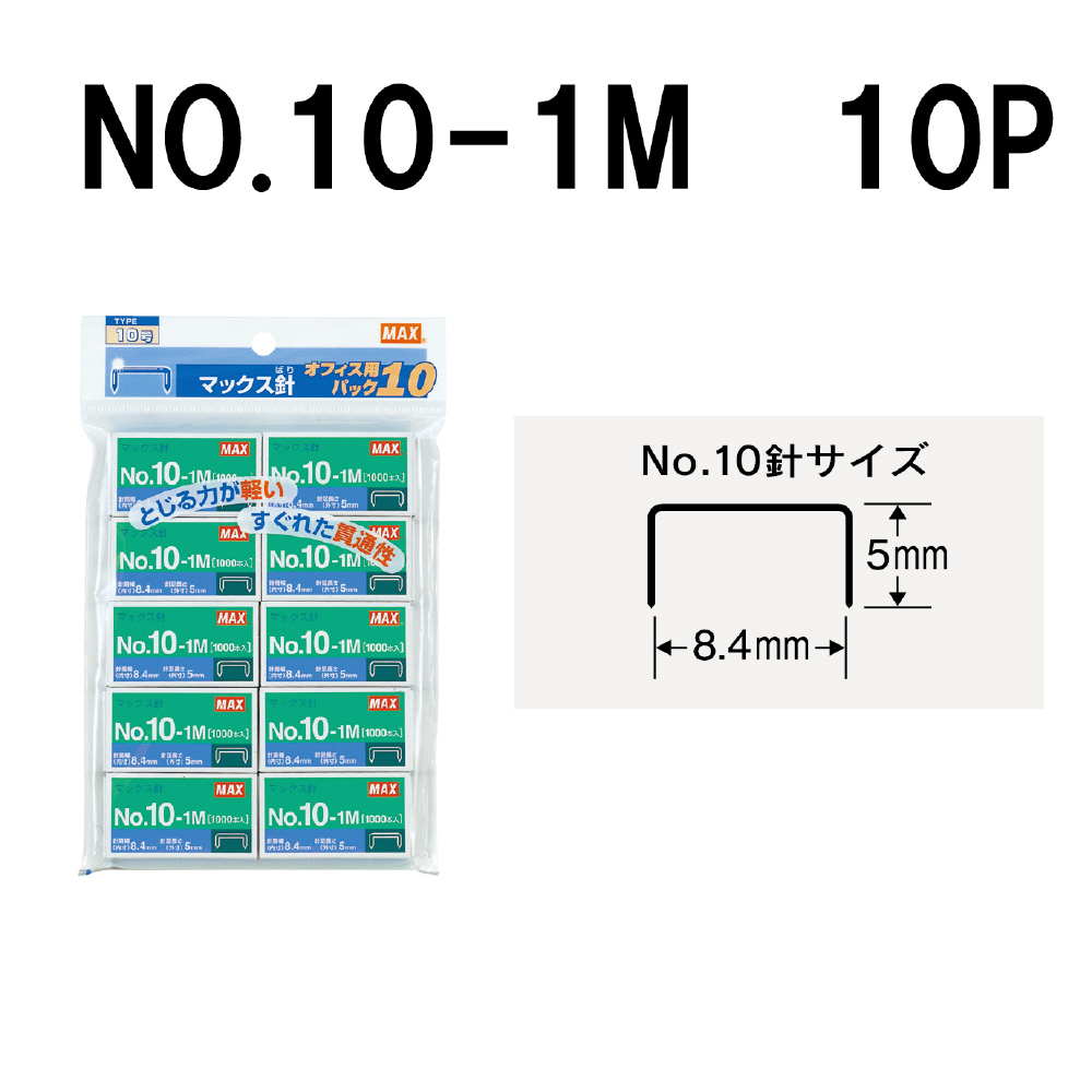 10号針オフィス用パックシリーズ(10個入り) No.10の規格ホッチキス針。