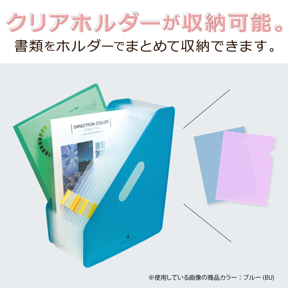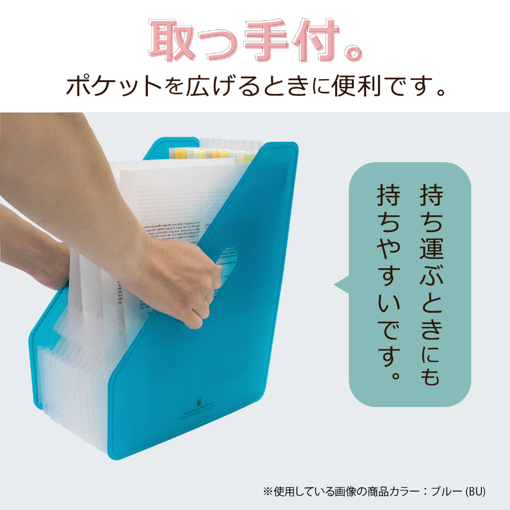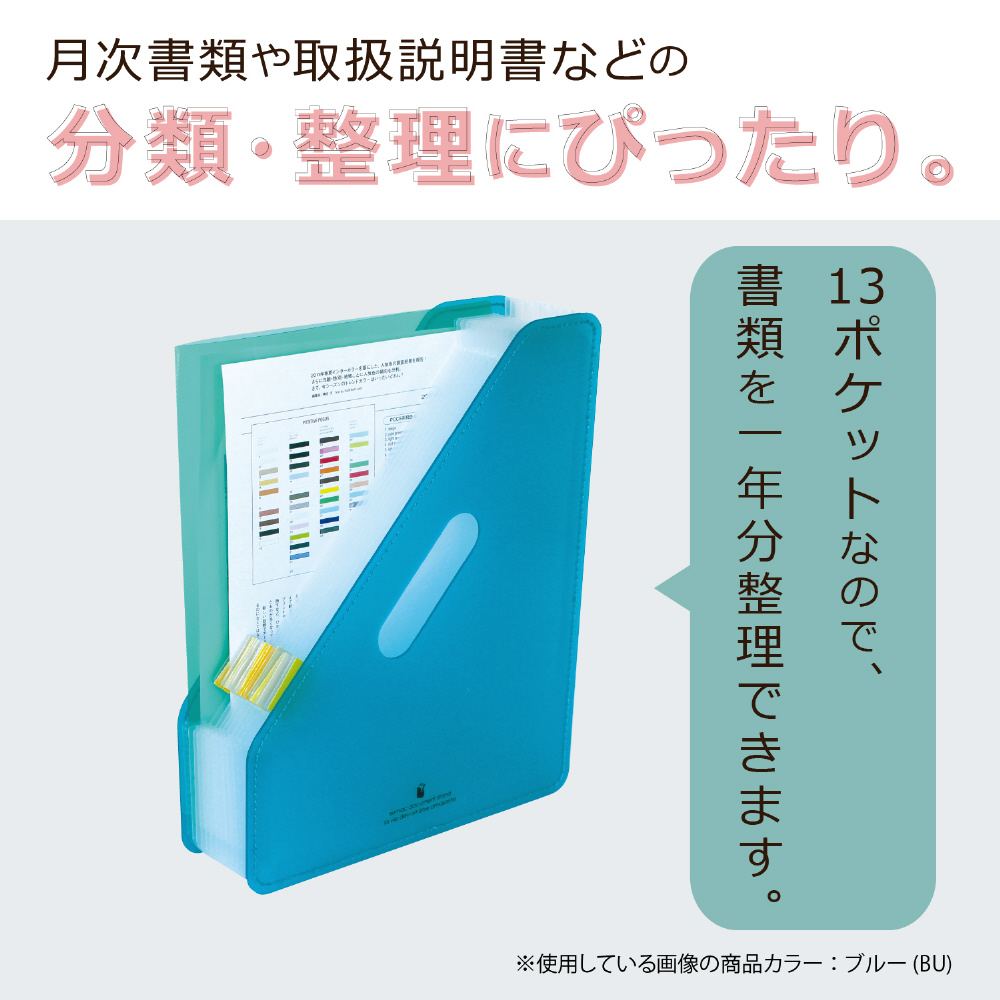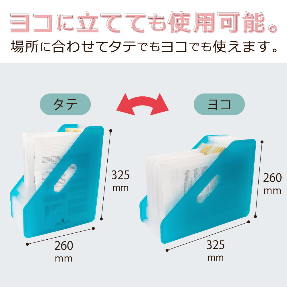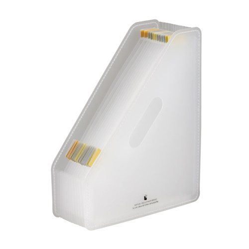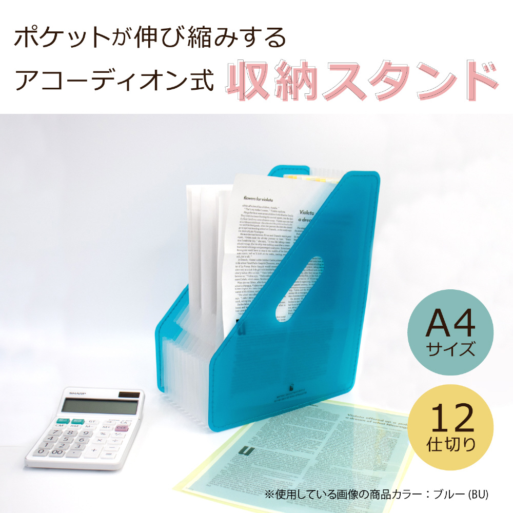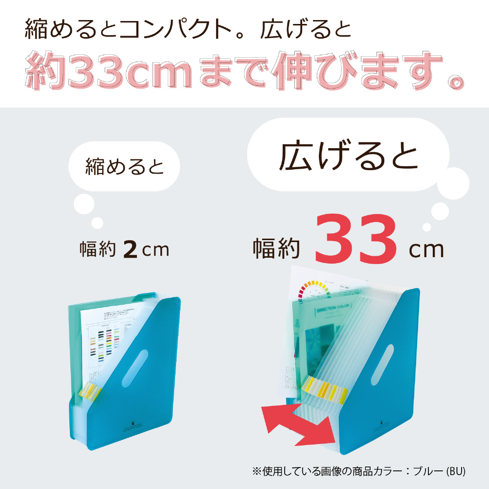 書類のボリュームによってポケットが伸び縮みする 分類に便利なアコーディオン式の収納スタンド