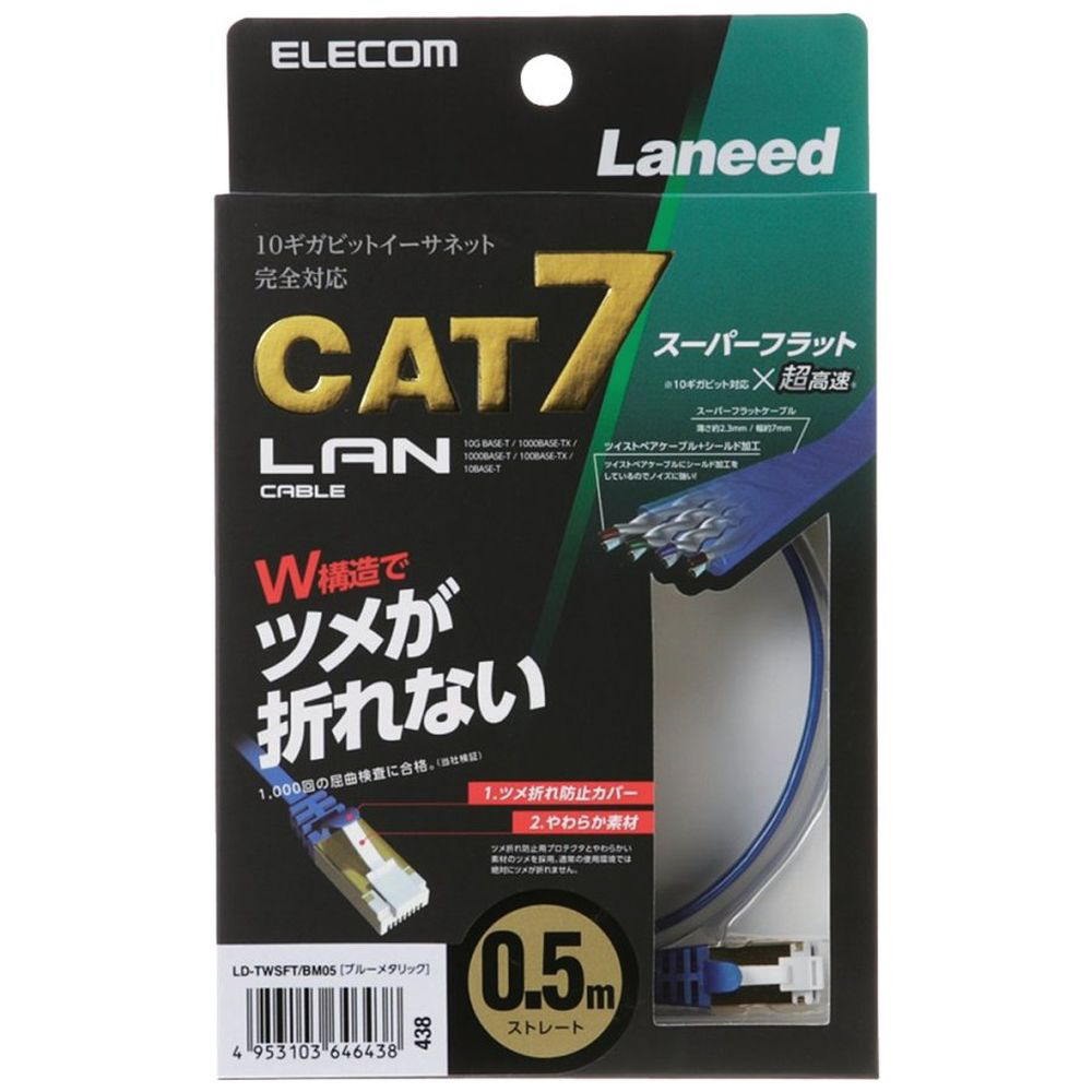LD-TWSFT/BM05 カテゴリ7対応ツメ折れ防止フラットLANケーブル (0.5m)