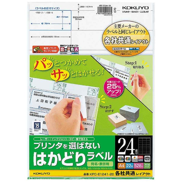 プリンタを選ばない はかどりラベル 121g/m2 (A4サイズ:24面・22シート:528片) KPC-E1241-20