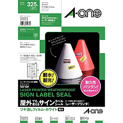 31073 (屋外でも使えるサインラベルシール/レーザープリンタ用/ツヤ消しフィルム/ホワイト/A4判/65面)