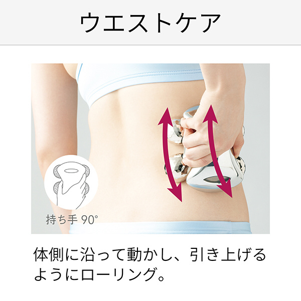 進行方向の前後にダブルの加圧スポットを生み出します。異なる圧を連続的に加える複雑な動きをすることで、たるみが気になる部分に強力にアタックします。