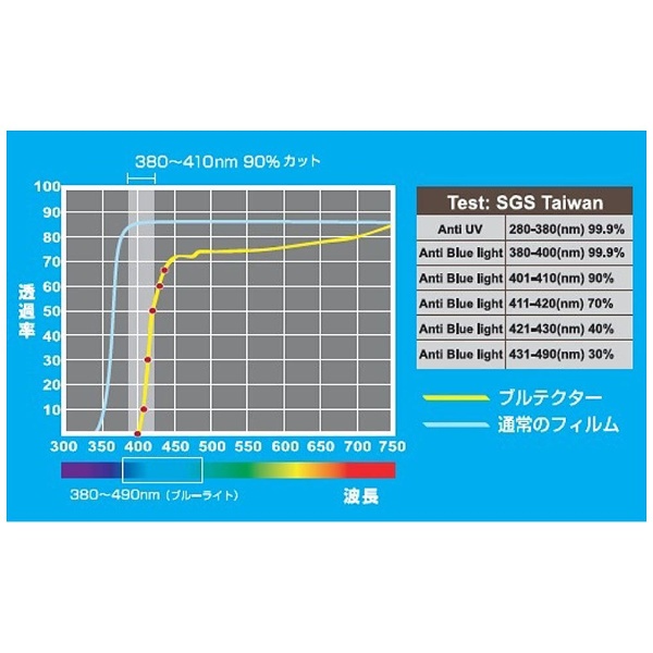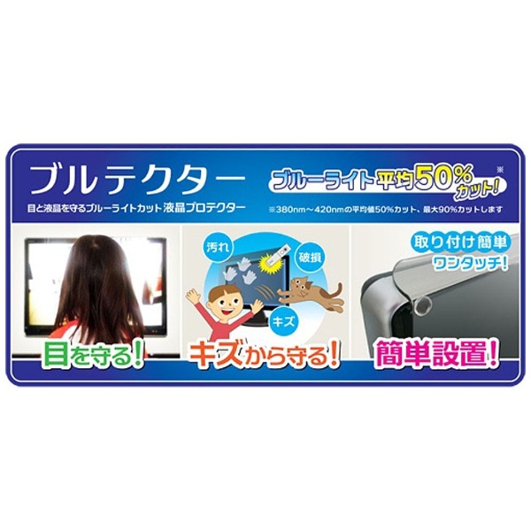 目と液晶両方を守る、ブルーライトカットプロテクター。ブルーライトを50%以上カットし、紫外線もしっかりカット!