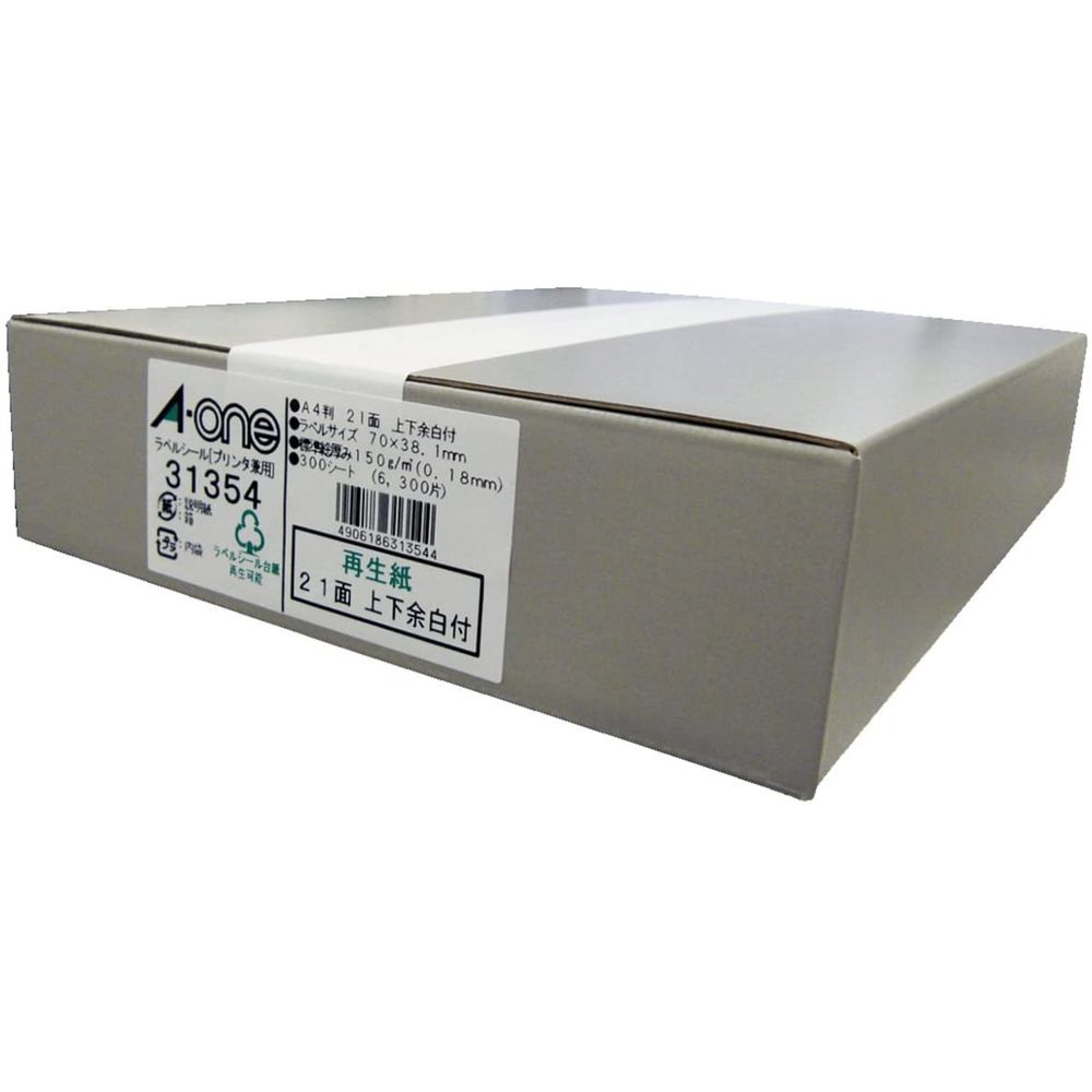 31354 (ラベルシール/プリンタ兼用/再生紙/ホワイト/A4/21面/上下余白付)