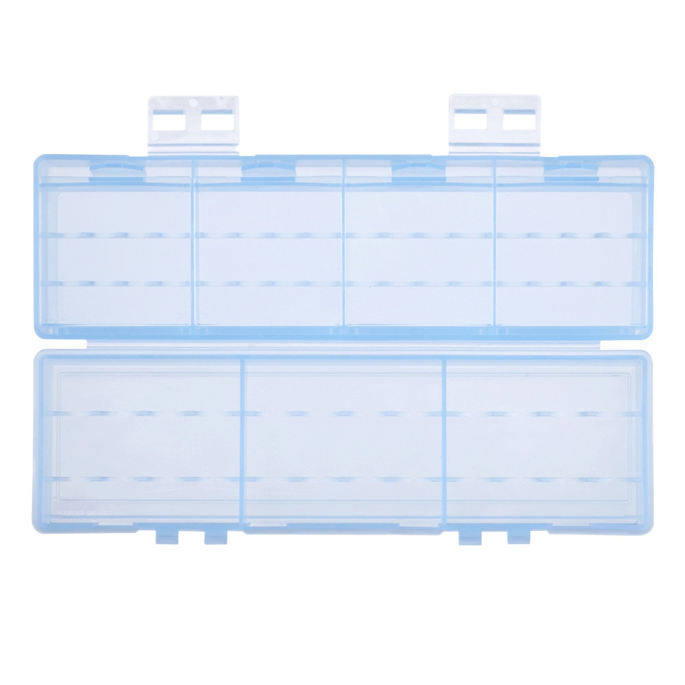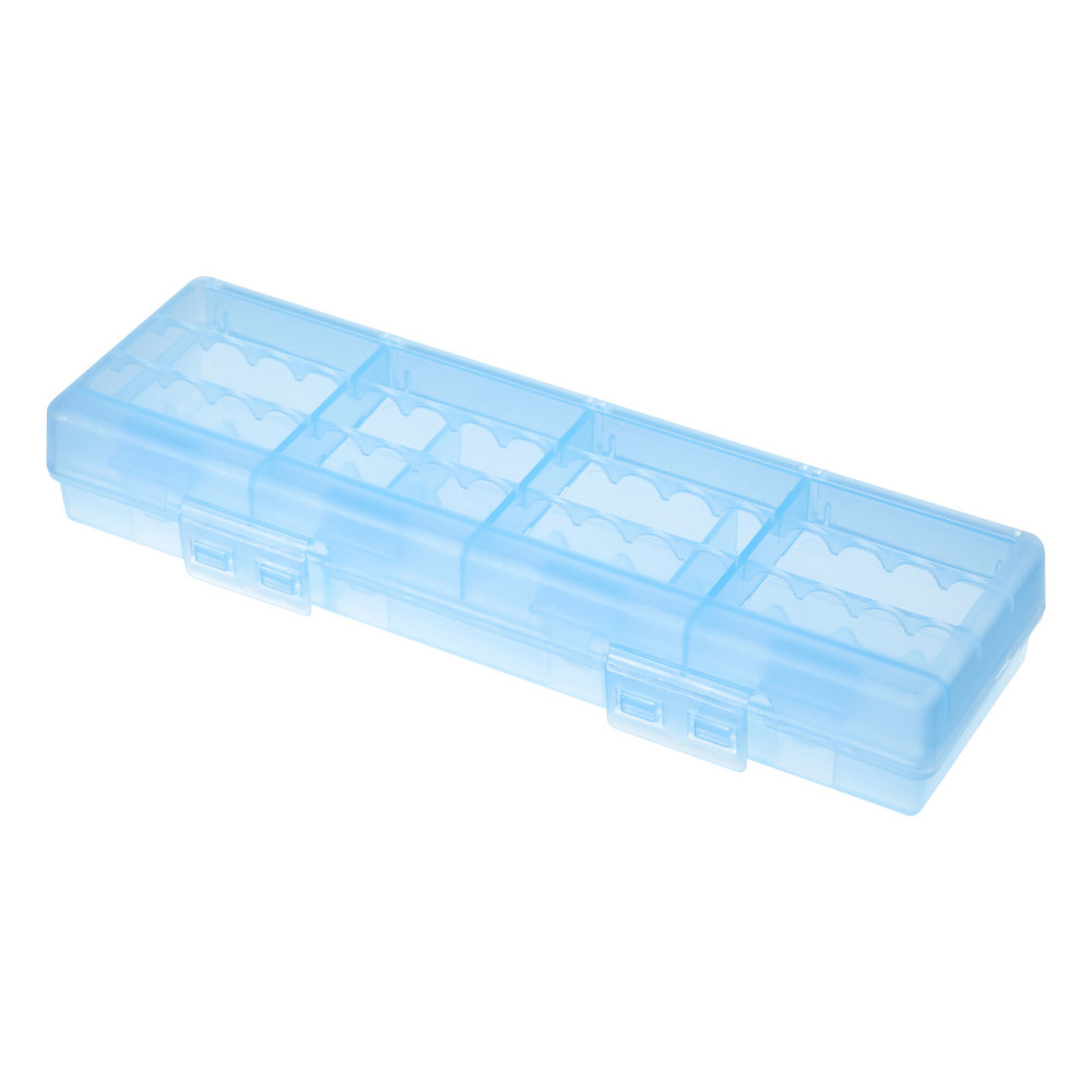 単三・単四乾電池を4本ずつに分けて上下2段で収納できる大容量電池ケース。ブルー。