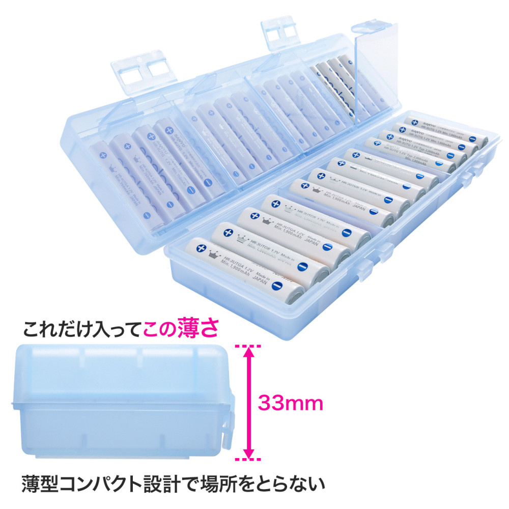 充電式電池、未使用乾電池の整理や保管に最適な大容量タイプです。