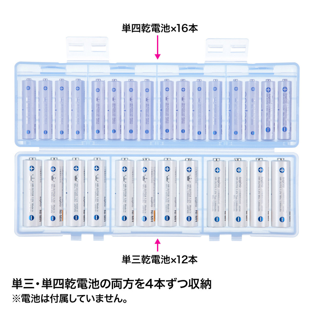 単三・単四乾電池の両方の収納に対応した電池ケースです。