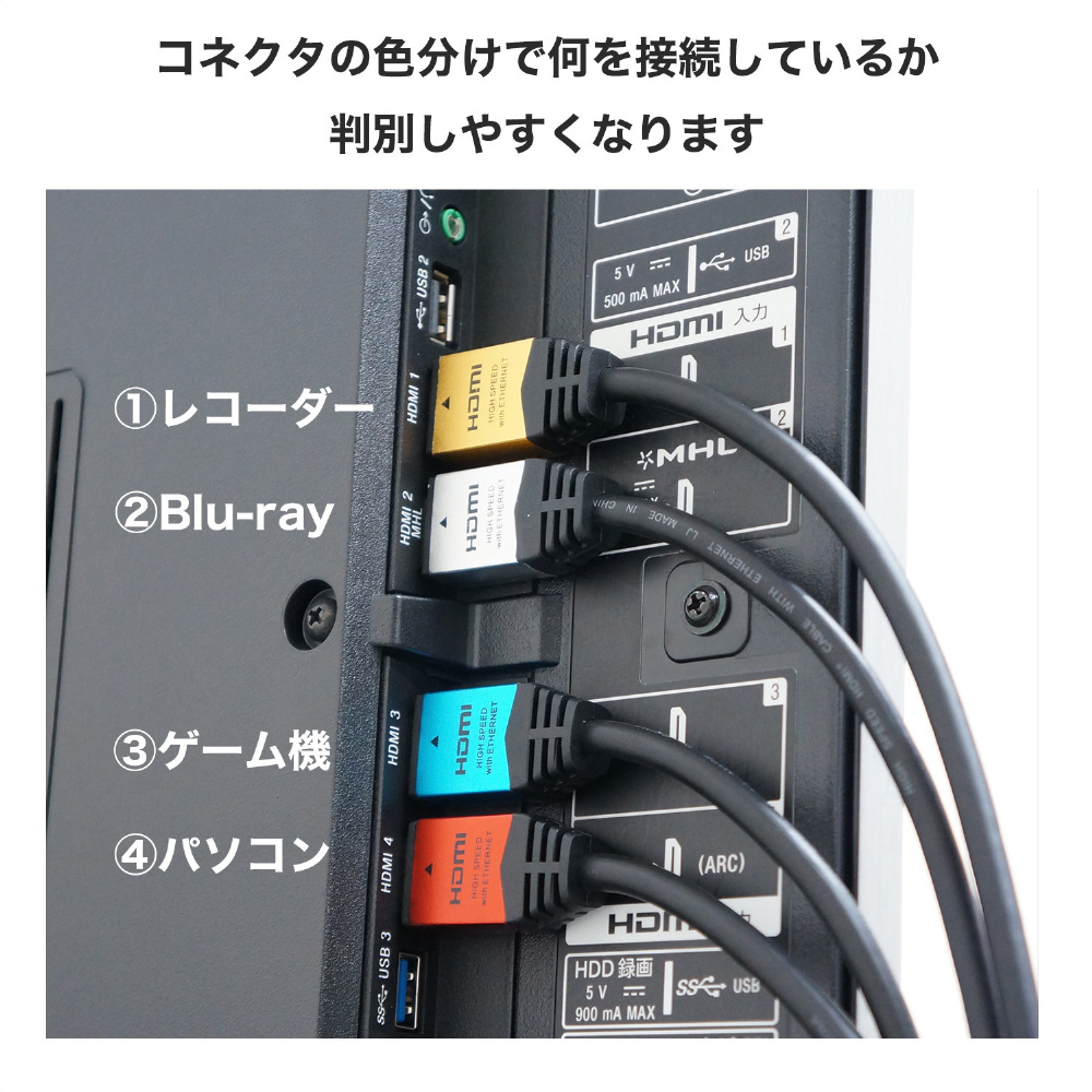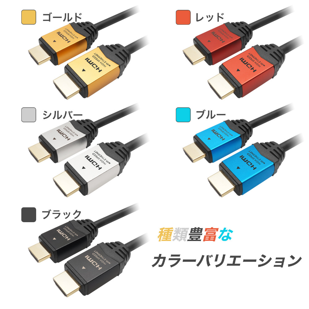 1.5mのHDMI Ethernetチャンネルや、オーディオリターンチャンネル、3D映像、4K×2K解像度に対応したハイスピードHDMIケーブル。ゴールドヘッド。