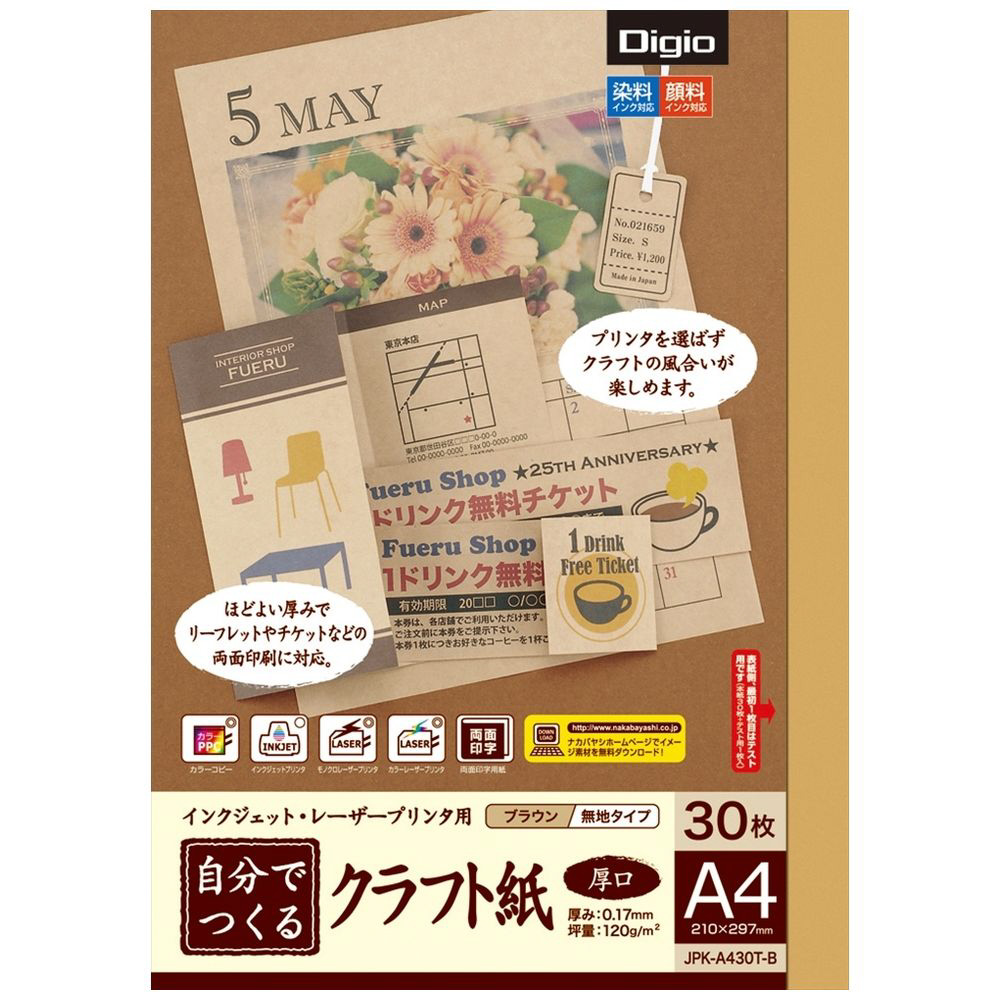 自分で作るクラフト紙 厚口[各種プリンタ /A4サイズ /30枚] JPK-A430T-B ブラウン