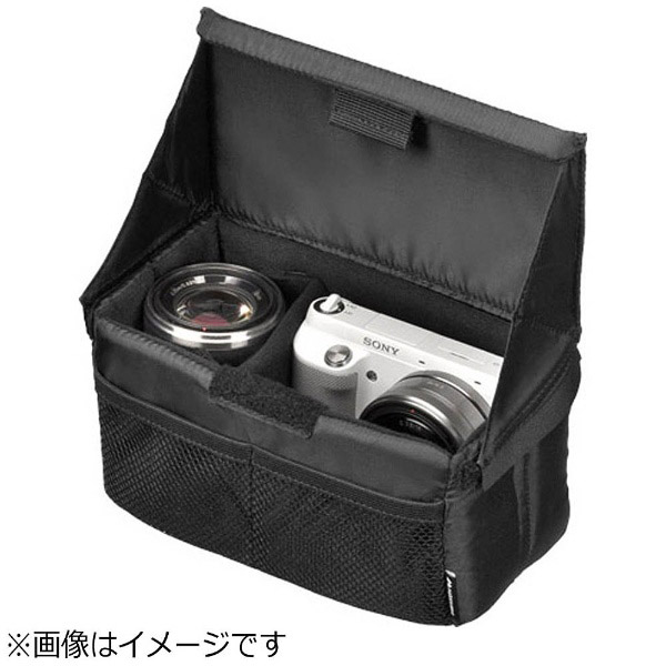 標準レンズ付きミラーレス一眼と交換レンズ一本の収納を想定したサイズです。普段使いのバッグがカメラバッグに早変わり!折り畳みできるインナーソフトボックス。