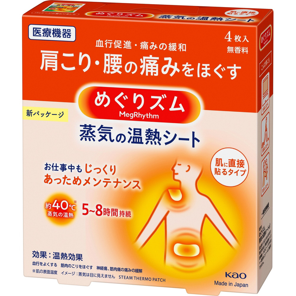 【めぐりズム】蒸気の温熱シート 肌に直接貼るタイプ4枚入〔温熱〕