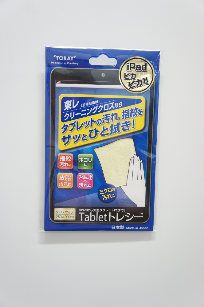 東レの高分子化学技術により実現した直径約2ミクロンの長極細繊維のクリーニングクロス。超極細繊維によりタブレットの汚れ・指紋もキレイに!