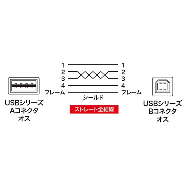 〔USB TYPE-A(オス)⇔ USB TYPE-B(オス):USB 2.0〕