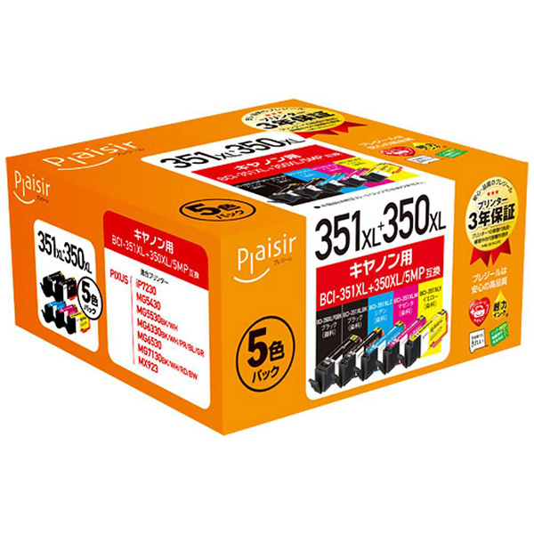 【互換】 PLE-C351XL5P (キヤノン BCI-351XL+350/5MP対応/互換インクカートリッジ/5色BOXパック) 【864】