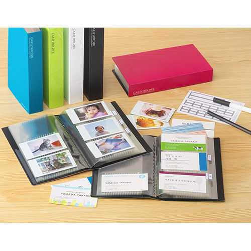 透明度の高いポケットを使用したカードホルダー。名刺やショップカードの保存に最適です。