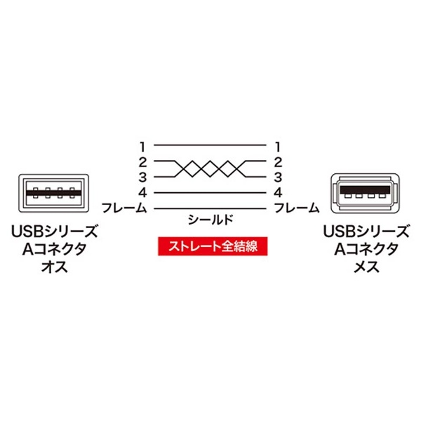コネクタ形状:USB Aコネクタオス-USB Aコネクタメス ※両面挿しはオス側のみです。