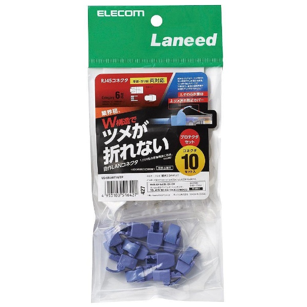 LD-6RJ45T10/TP 保護カバー付きツメの折れないLANコネクタ (Cat6対応/10個入り) 【864】