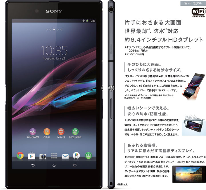 【CPU】Qualcomm APQ8074(2.20GHz)、【メモリ】2GB、【SSD】32GB、【モニター】タッチ対応6.4型、【OS】Android 4.2【Office】無し
