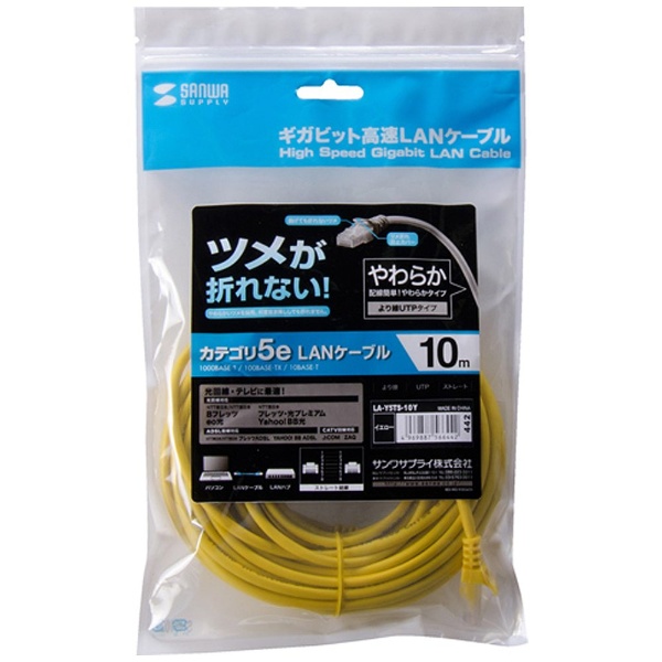 | 商品名 | LA-Y5TS-10Y カテゴリー5e対応ツメ折れ防止LANケーブル (10m/簡易パッケージ/イエロー) |