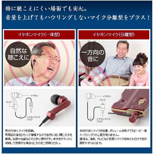 特に聞こえにくい場面でも安心。音量を上げてもハウリングしないマイク分離型をプラス!
