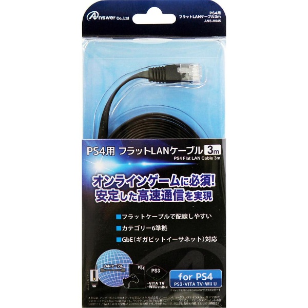 PS4用 フラットLANケーブル 3m (PS4/PS3/Vita TV対応) [ANS-H045]