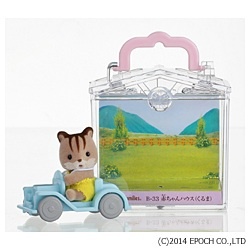 くるみリスの赤ちゃんとくるまのセットです。お家の形のケースが、とってもかわいいね♪