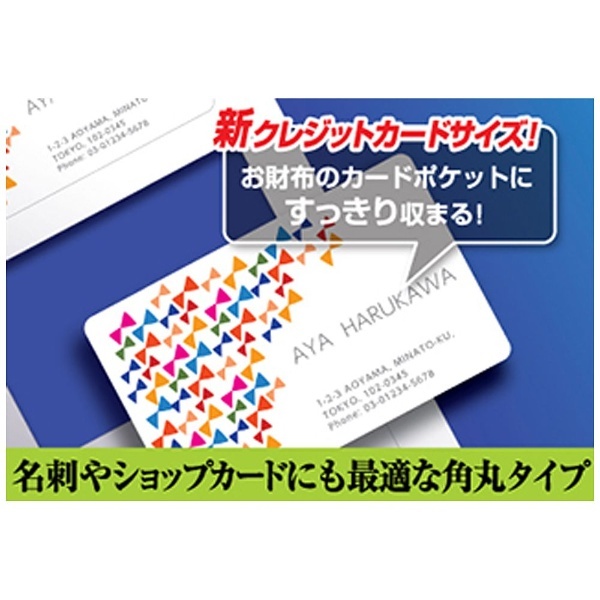 名刺やショップカードにも最適なやさしい印象の角丸タイプ。お財布のカードポケットにキレイに収まるクレジットカードサイズの名刺用紙。