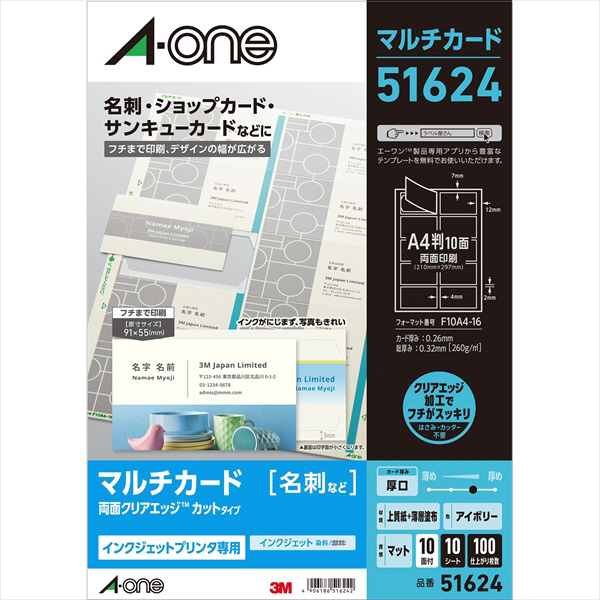 〔インクジェット〕 マルチカード 名刺 100枚 (A4サイズ 10面×10シート・アイボリー) 51624