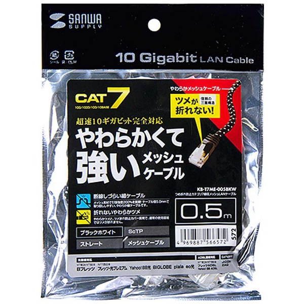 | 商品名 | KB-T7ME-005BKW カテゴリー7・10ギガビットイーサネット対応 LANケーブル (0.5m/ブラック&ホワイト) |