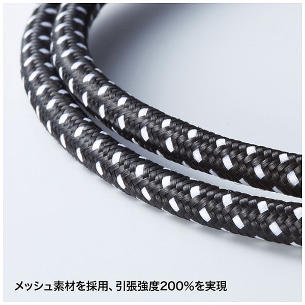 ■メッシュ素材を採用、引張強度200%を実現しました。ケーブル径5.0mmで取り回しやすい、柔らかで細いケーブルです。