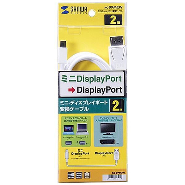 DisplayPortケーブル【DisplayPort オス】⇔【ミニDisplayPort オス】(2.0m・ホワイト) KC-DPM2W